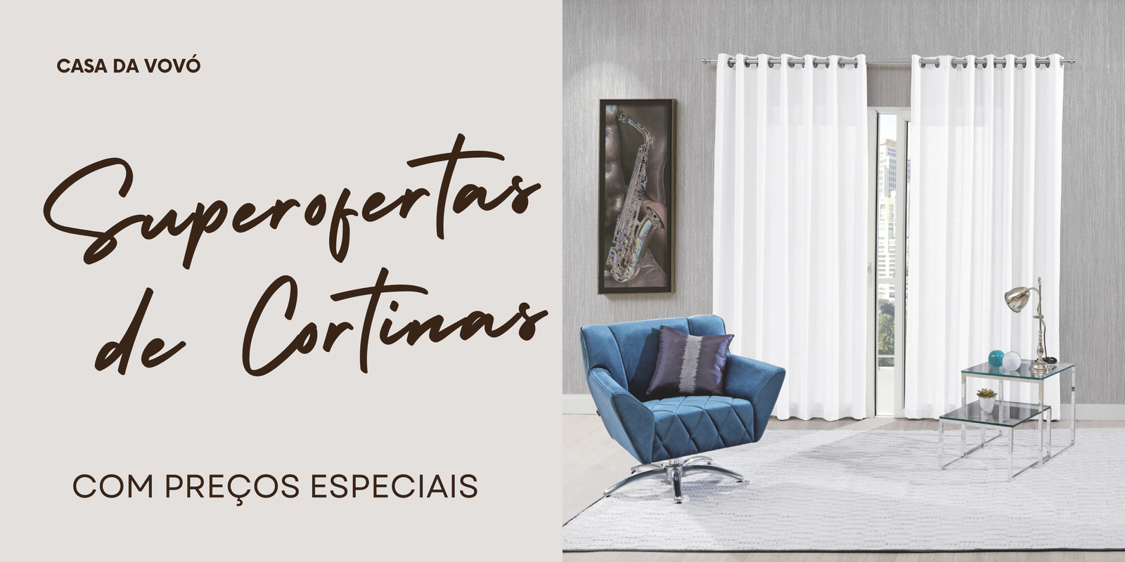 CORTINA RÚSTICA PRIMITIVE 2,00 X 2,30 MARFIM - COM ILHÓS PARA VARÃO